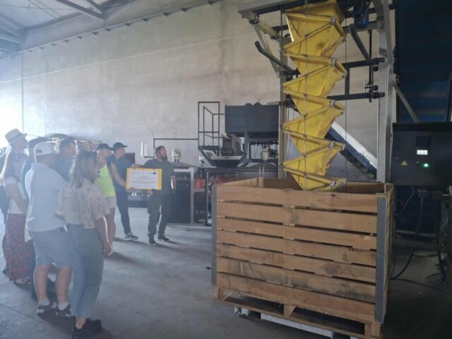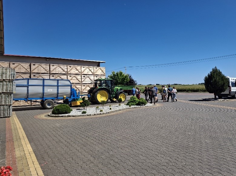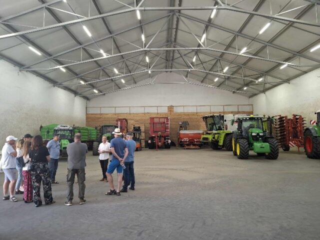Następnie odbyła się wizyta w gospodarstwie Państwa Jaskólskich z Borku — zdobywców I miejsca konkursu „Agricola – Syn Ziemi” 2023 w kategorii „Innowacje w rolnictwie”. Rolnicy wraz z doradcami zwiedzili komory chłodnicze oraz nowoczesną przechowalnię przeznaczoną do magazynowania warzyw zarówno w skrzyniach, jak i luzem. Gospodarz zaprezentował również proces obróbki cebuli w gospodarstwie oraz sprzęt wykorzystywany w prowadzeniu rolnictwa precyzyjnego.