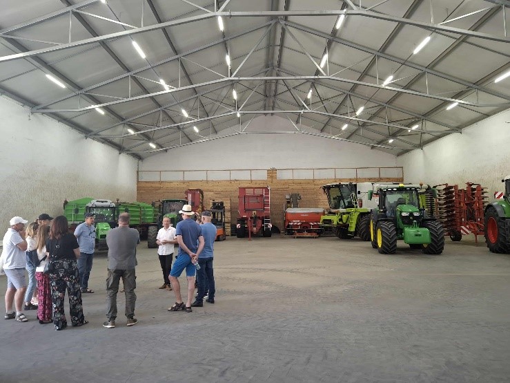 Grupa zainteresowana technologiami wykorzystywanymi w gospodarstwach o profilu warzywnym oraz uprawą, przechowywaniem i skupem zbóż odwiedziła gospodarstwo Państwa Dębowskich z Lubrańca-Parcele — Wicemistrzów Konkursu AgroLiga 2022 w województwie kujawsko-pomorskim w kategorii „Firma”, specjalizujących się m.in. w przechowywaniu zbóż. Uczestnicy zwiedzili nowoczesny park maszynowy wyposażony w systemy GPS, wspierające rolnictwo precyzyjne, a także liczne suszarnie wykorzystywane do przygotowania do przechowywania kukurydzy, pszenicy i rzepaku, skupowanych od okolicznych rolników. Państwo Dębowscy uprawiają ponad 200 ha gruntów, gospodarując na mozaikowatych glebach klas I–VI.