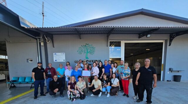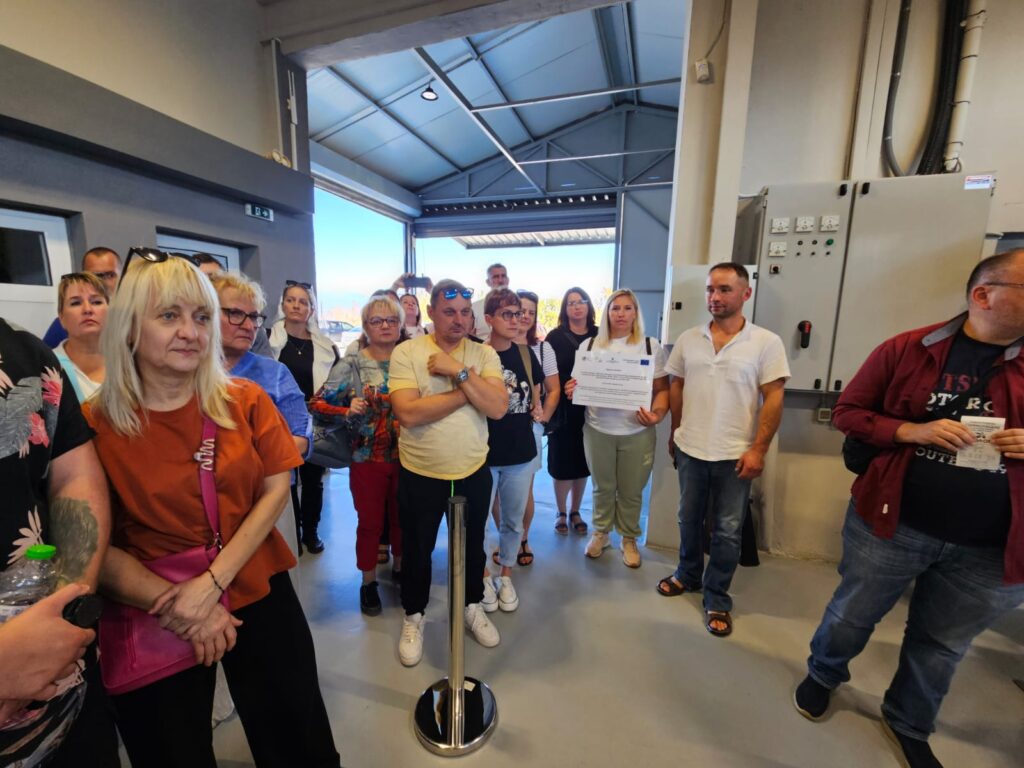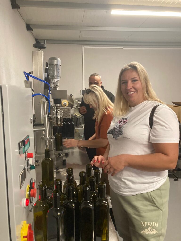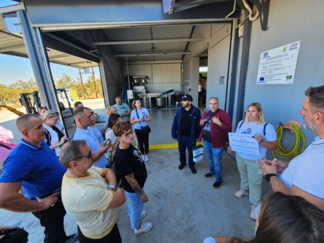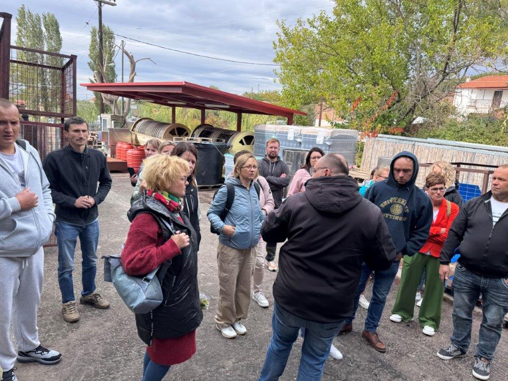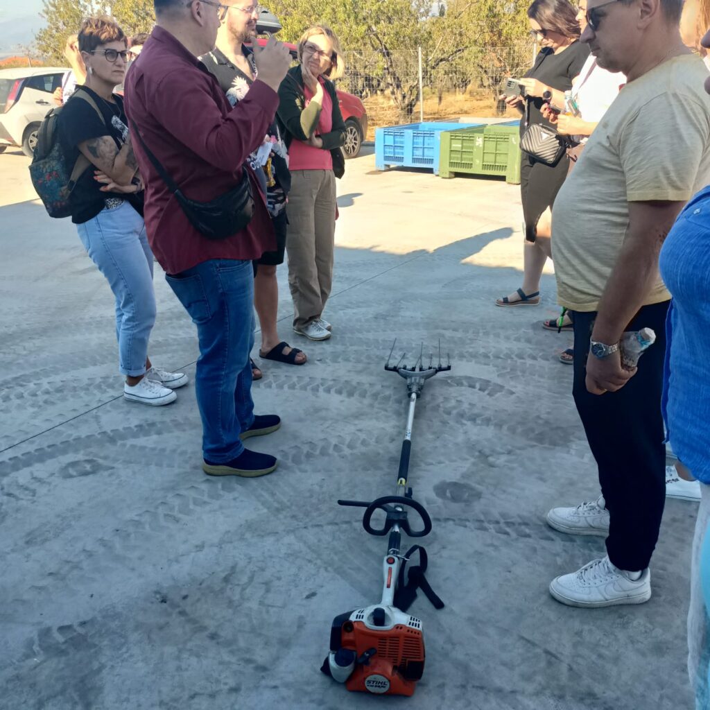 W tym dniu odwiedziliśmy również certyfikowaną ekologiczną tłoczarnie oliwy z oliwek tłoczonej na zimno oraz plantację oliwek „Giannouxidis”. Jest to firma rodzinna prowadzona od trzech pokoleń, założona przez dziadka obecnego właściciela. Oliwa z oliwek jest nieodłącznym elementem greckiej tradycji. Jest symbolem zdrowia, długowieczności i gościnności. Tłoczarnia „Giannouxidis” łączy ekologię, zrównoważony rozwój i innowacje. W 2023 roku dzięki dofinansowaniu z programów unijnych zostały zakupione nowe maszyny, co znacząco usprawniło pracę. Jest to jedna z najnowocześniejszych tłoczarni oliwy z oliwek w Grecji, w której cały proces odbywa się przy minimalny zużyciu wody. Podczas naszej wizyty mogliśmy obejrzeć każdy z etapów powstawania oliwy, a na końcu samodzielnie napełnić butelki powstałą oliwą, co spotkało się z dużym entuzjazmem i zainteresowaniem uczestników. Linia butelkująca oliwę to najnowszy nabytek, zakupiony zaledwie kilka tygodni temu. Na uwagę zasługuję także fakt, że w całym procesie powstawania oliwy, wszystkie produkty uboczne podlegają dalszemu wykorzystaniu. Pestki są magazynowane i odbierane przez firmę, którą wytwarza z nich biodiesel. Natomiast liście i skórki pozostałe z tłoczenia oliwy mają zastosowanie jako nawóz. Tłoczarnia posiada także panele fotowoltaiczne, dzięki czemu energia elektryczna generowana jest w dużej mierze ze słońca, co prowadzi do znaczących oszczędności na rachunkach za prąd oraz zwiększa niezależność od rosnących cen energii. Firma Giannouxidis jest idealnym przykładem jak łączyć innowacyjną technologię przy jednoczesnym poszanowaniu natury, ochrony środowiska i tradycji.