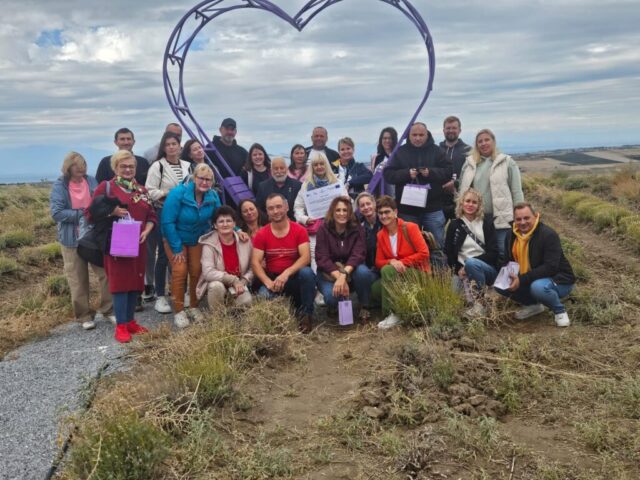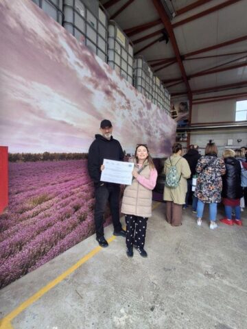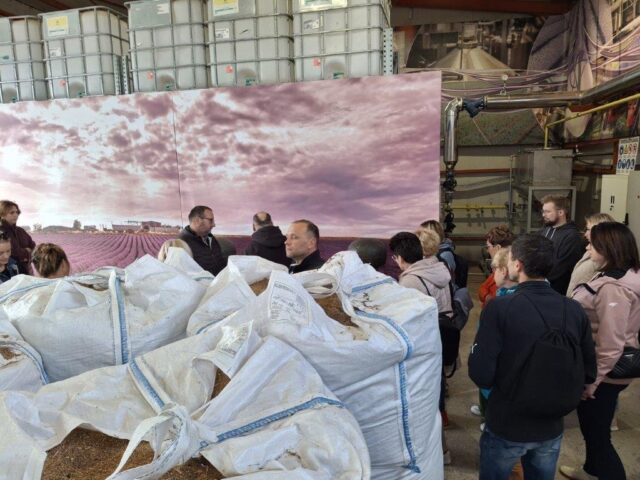 Podczas drugiego dnia uczestnicy odwiedzili Alpha Lavender – Multifunctional Farm & Experiences. Jest to rodzinne gospodarstwo specjalizujące się w ekologicznej uprawie lawendy oraz innych ziół. Wykorzystuje surowce roślinne do produkcji olejków eterycznych. W gospodarstwie uprawia się 160 ha lawendy i 40 ha innych ziół aromatycznych. Zbiór lawendy następuje w maju i jest w pełni zmechanizowany. Zbiera się tylko kwiatostany, które umieszczane są w specjalnych zbiornikach, gdzie za pomocą pary wodnej uwalniane są olejki eteryczne. Poza olejkami powstają też hydrolaty. Z 600 kg kwiatostanów pozyskuje się od 5 do 25 kg olejku. Plantacje nie są nawadniane, ponieważ podlewanie ma negatywny wpływ na jakość surowca bardziej porażanego przez choroby grzybowe. Nie stosuje się również żadnego nawożenia. Plantacje prowadzone są zgodnie z wymogami rolnictwa ekologicznego. Na terenie gospodarstwa znajduje się sklepik z szerokim asortymentem produktów na bazie lawendy i innych aromatycznych ziół, mini zoo oraz pokazowy ogródek z ziołami.