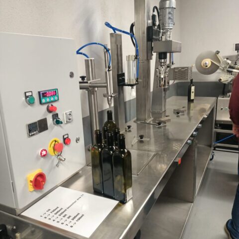 8. Oliwa jest ważona i zlewana do metalowych puszek lub zlewana do zbiornika, z którego trafia na linię butelkującą. Ważne jest, aby oliwa przechowywana była w ciemnych pojemnikach czy butelkach, aby chronić ją przed utlenianiem.