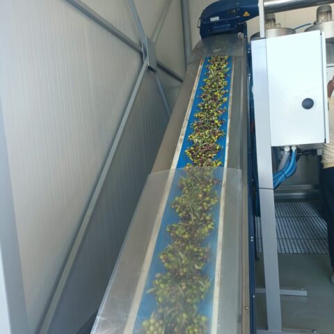 2. Taśma transportuje oliwki do komory myjącej.