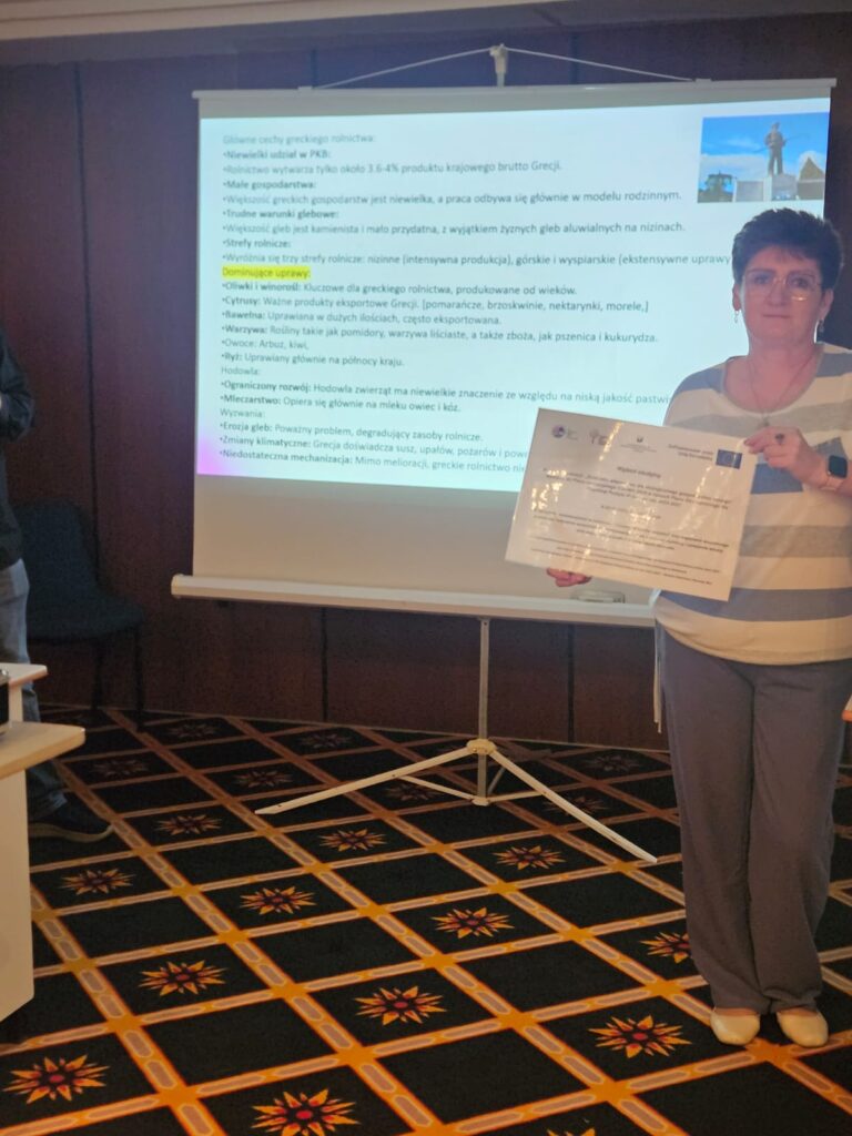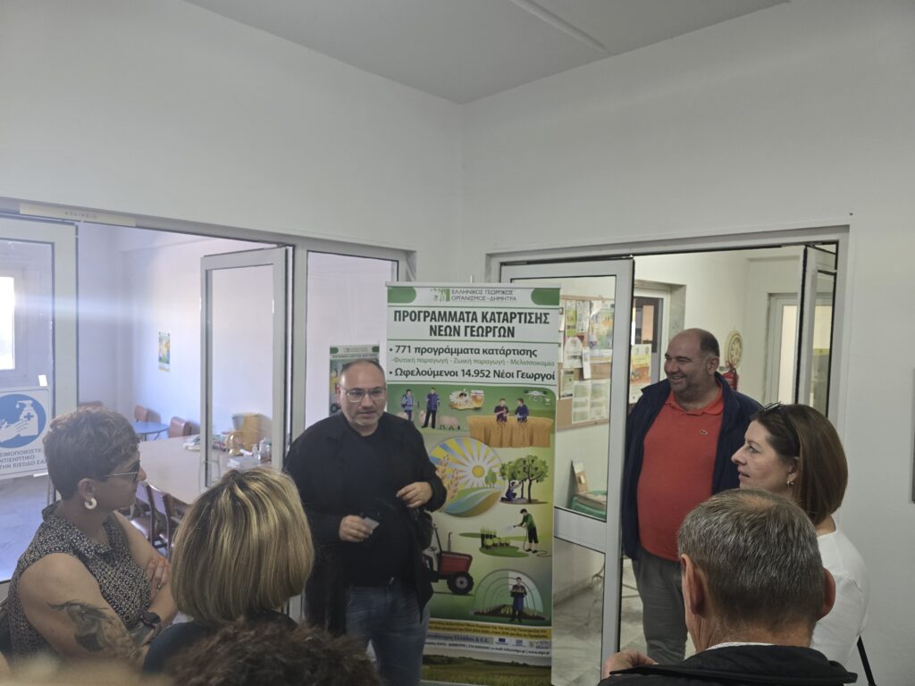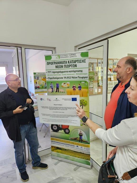 W ostatni dzień wyjazdu studyjnego odwiedziliśmy siedzibę ELGO-DIMITRA, grecką instytucję, która opracowuje i wspiera działania mające na celu modernizację i rozwój sektora rolnego, organizuje szkolenia dla rolników, przeprowadza certyfikację jakości produktów rolnych oraz żywności. Prowadzą także certyfikację dobrych praktyk rolniczych. Pan Rigas Giovannopoulos – Główny Dyrektor programów edukacyjnych dla nowych rolników przekazał nam informacje o zadaniach jednostki. ELGO -DIMITRA przygotowuje szkolenia dla rolników z 771 programów, w których mogą brać udział zarówno młodzi rolnicy jak również ci już dużej pracujący na roli. Szkolenia przygotowywane są dla grup ok. 20-osobowych. Rolnicy są dzieleni na grupy ze względu na rodzaj prowadzonej produkcji (roślinna, zwierzęca, pszczelarstwo, lub grupy mieszane).