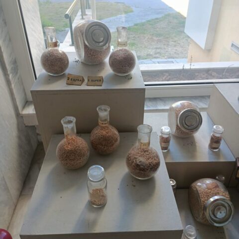 Dzięki uprzejmości Pani Wasiliki Papadopulu-Michalak, kierownik stacji kontroli i standaryzacji zbóż, mieliśmy możliwość odwiedzenia laboratorium. Pani Wasiliki poinformowała nas, iż do tego miejsca spływają zboża z całego kraju. Prowadzona jest statystyka, mająca ukazać stan zbóż na tle państwa. Analiza zbóż dotyczy m.in. koloru i wielkości ziaren, ilości białka, ilości ziaren w 1 kg. Badaniu także podlega kukurydza oraz ryż. Rolnik indywidualny może skorzystać z usług laboratorium, ale jest to odpłatna usługa.
