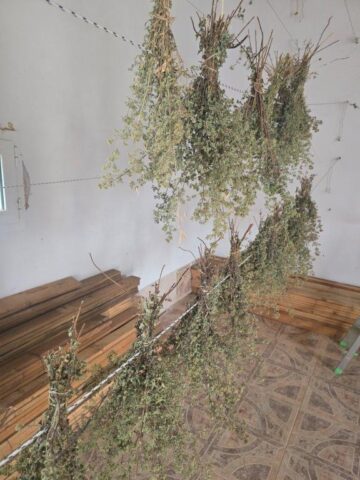 Kolejnym miejscem, które odwiedziliśmy była naturalna suszarnia ziół GReco. Suszenie roślin odbywa się na drewnianych ramkach, na których luźno układa się zioła, lub tworzy się bukiety, które zawiesza się na sznurkach. Miejsca te wietrzone są naturalnie poprzez znajdujące się okna na przeciwległych stronach. Czas suszenia zależy od gatunku rośliny oraz intensywności wietrzenia, np. gojnik suszony jest ok. 15 dni. Podczas tego procesu gojnik traci powyżej 65% swojej wagi. Efektem poprawnego suszenia jest utrzymanie koloru oraz aromatów ziół.