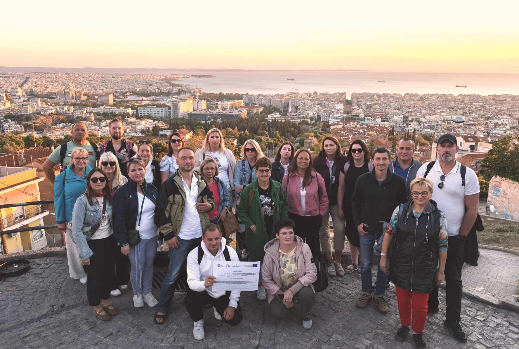 Nasza podróż rozpoczęła się na wyznaczonych miejscach zbiórki w Minikowie i Przysieku. Autokarem przejechaliśmy do Warszawy na Lotnisko Chopina i samolotem polecieliśmy do Grecji. W Salonikach czekał na nas nasz opiekun merytoryczny Christos Markopulos, magister Leśnictwa i Środowiska Naturalnego oraz magister Architektury Krajobrazu Uniwersytetu Arystotelesa w Salonikach, który powitał nas greckim przysmakiem – figami w czekoladzie. Nocowaliśmy w hotelu Sun Beach Hotel w Agia Triada niedaleko centrum Salonik. Nasz opiekun przestawił nam program wyjazdu i przygotował wykład dotyczący rozwiązań greckich rolników w ramach Wspólnej Polityki Rolnej. Wyjazd został zorganizowany przez greckie biuro podróży Exit Travel.