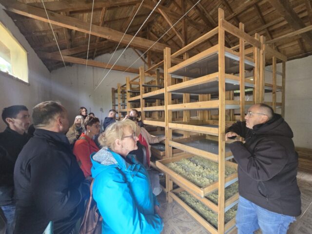 W tym dniu grupa uczestników odwiedziła również ekologiczną winiarnię Moschopolis, położoną w malowniczej miejscowości Monopigado w północnej Grecji. Winiarnia prowadzona jest przez członków Spółdzielni lokalnych producentów wina, wśród których znajdują się również pracownicy Uniwersytetu Arystotelesa w Salonikach. Spotkanie stanowiło doskonałą okazję do poznania metod uprawy winorośli, ekologicznego podejścia do produkcji oraz połączenia tradycji z innowacyjną technologią.