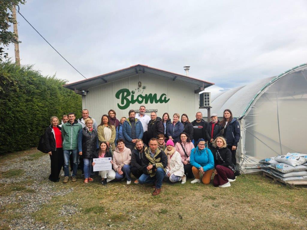 W tym dniu mieliśmy okazję odwiedzić największą na Bałkanach, certyfikowaną, ekologiczną szkółkę produkującą sadzonki roślin Ktima Bioma, która powstała w 2005 roku i od początku swojej działalności stawia na ochronę tradycyjnych odmian oraz rozwój rolnictwa ekologicznego. W ofercie szkółki znajdują się wyłącznie rośliny ekologiczne – warzywa (m.in.: jarmuż, kapusta, brokuły, sałata, pomidory, cebula), zioła (m.in.: oregano, gojnik, szałwia, tymianek), a także jadalne kwiaty i truskawki. Ktima Bioma produkuje rocznie około 17 milionów sadzonek, które trafiają zarówno na rynek lokalny, jak i do klientów zagranicznych. Rośliny eksportowane są m.in. do Bułgarii, Cypru, Albanii, Włoch i Rumunii. Firma współpracuje z blisko 2000 klientami z Grecji. Odbiorcami są zarówno profesjonaliści, jak i ogrodnicy amatorzy. Ktima Bioma dysponuje nowoczesnymi maszynami i infrastrukturą, które umożliwiają w pełni ekologiczny proces produkcji – od nasionka aż po gotową sadzonkę. Każdy klient otrzymuje certyfikaty potwierdzające ekologiczne pochodzenie roślin. Przyczyniając się to do ochrony różnorodności biologicznej i dziedzictwa rolniczego regionu firma prowadzi bank nasion tradycyjnych, w którym przechowywane są pierwotne odmiany roślin uprawianych od wieków. Oprócz produkcji sadzonek firma oferuje również wsparcie doradcze – przygotowuje dla klientów biznesplany, analizuje potrzeby klientów i pomaga dobrać odpowiednie rośliny. Ta pomoc jest bezpłatna, ponieważ filozofia Ktima Bioma opiera się na zasadzie wzajemnego rozwoju.