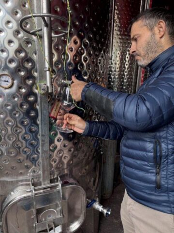 Winiarnia Moschopolis łączy nowoczesne technologie z tradycyjnymi metodami winiarskimi. Część win dojrzewa w drewnianych beczkach, gdzie proces trwa od sześciu miesięcy do dwóch lat. Inne natomiast leżakują w glinianych, wielkich dzbanach, które – dzięki naturalnej porowatości gliny – pozwalają winu „oddychać”. Temperatura wewnątrz tych naczyń pozostaje stabilna, co sprzyja harmonijnemu dojrzewaniu trunku. Każdego dnia winiarze ręcznie mieszają zawartość dzbanów, aby zapewnić równomierny przebieg fermentacji. Gdy proces dobiega końca, owoce naturalnie opadają na dno naczynia, a wino nabiera głębi i charakteru. Moschopolis to niewielka winiarnia, w której przy rozlewaniu win pracują cztery osoby. W ciągu jednego dnia są w stanie napełnić około 4000 szt. butelek, a cały proces butelkowania rocznej produkcji trwa około dwa miesiące. Właściciel winiarni zdradził również plany na przyszłość – rozbudowę obiektu o salę degustacyjną, która pozwoli odwiedzającym poznać nie tylko smak, ale i historię oraz filozofię marki Moschopolis.